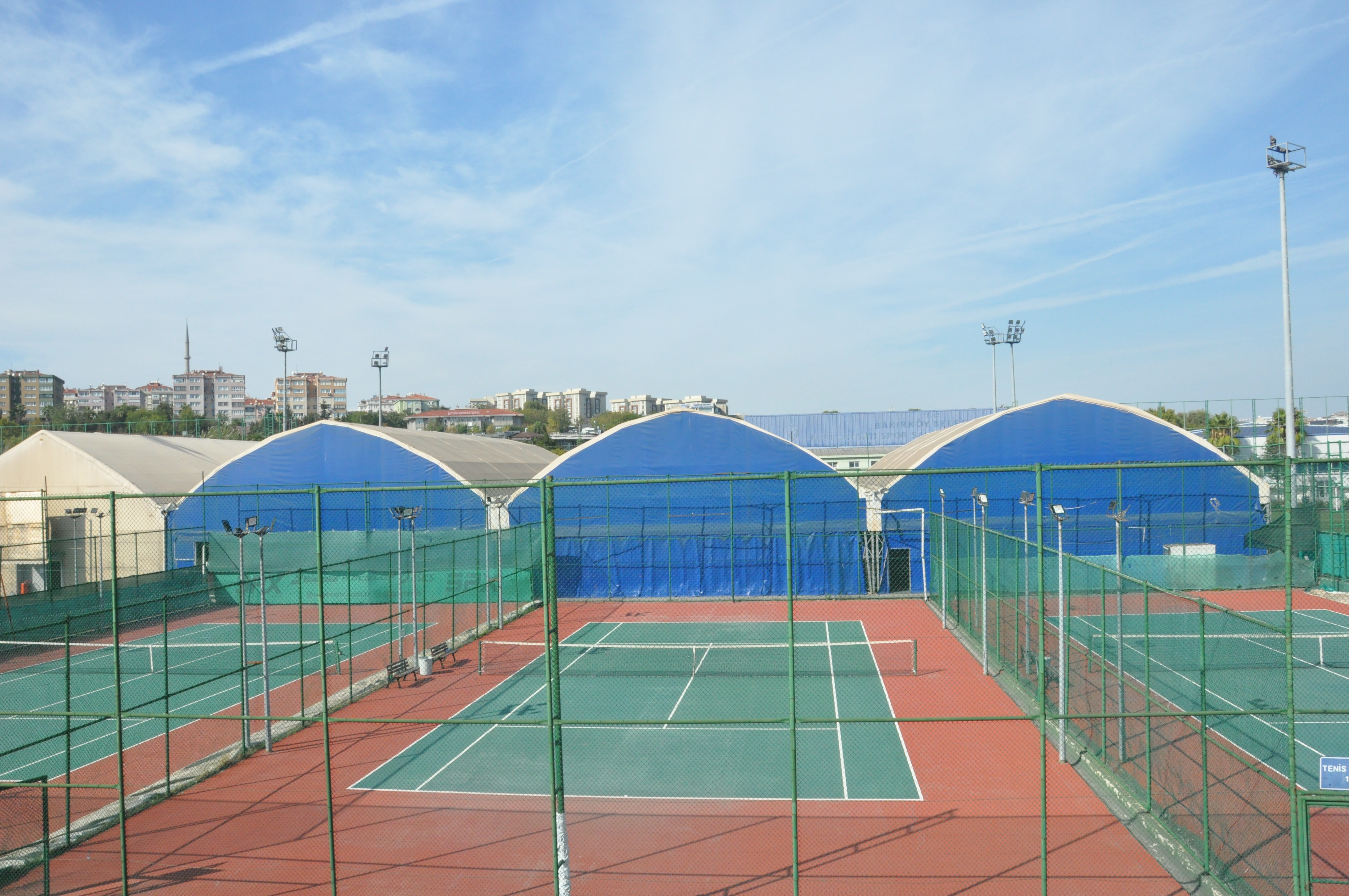 3 adet kapalı, 3 adet açık tenis kortu
